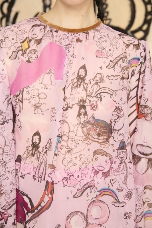 12 o'clock printの総柄ブラウス。シルクシフォンのなめらかで落ち感のある素材感が上品なアイテムです。