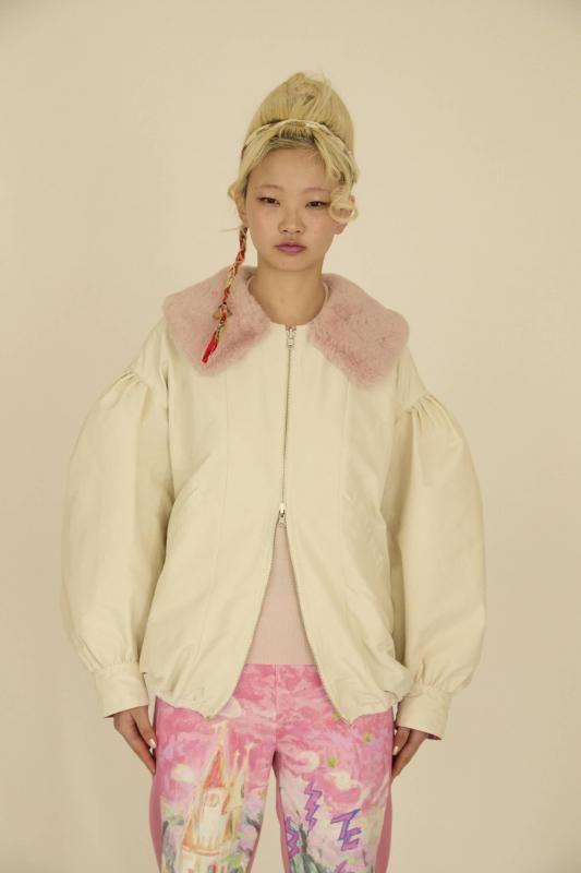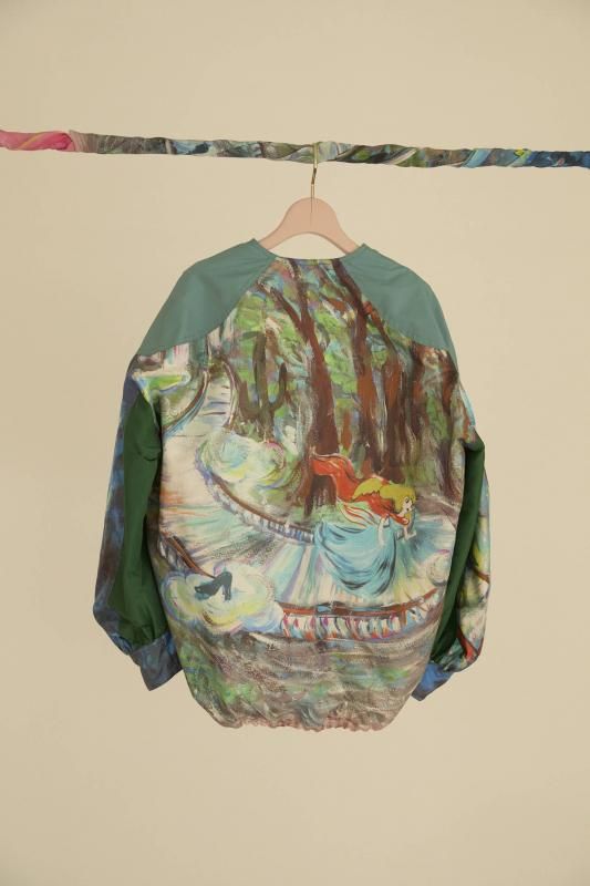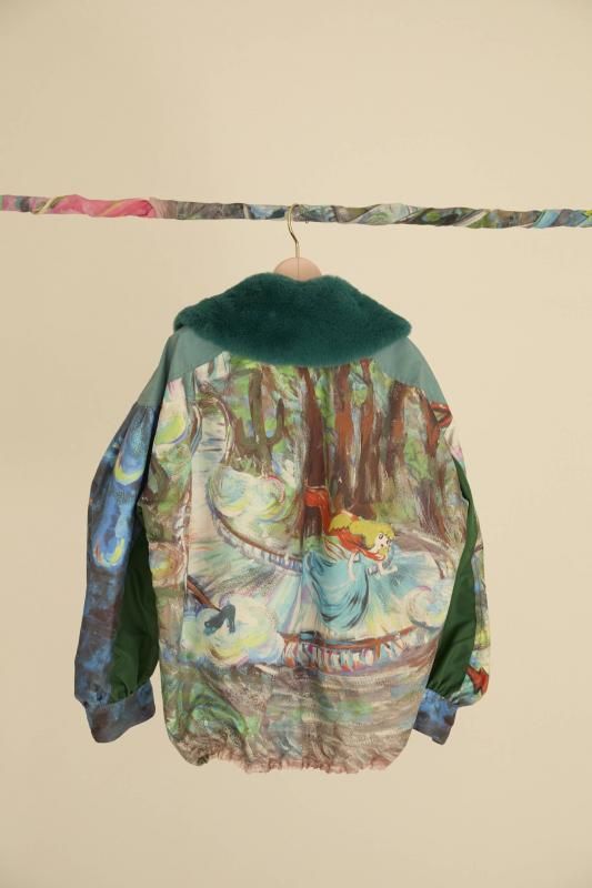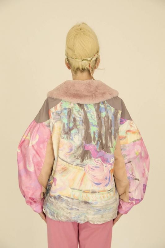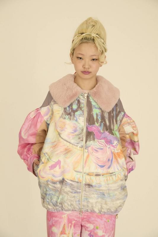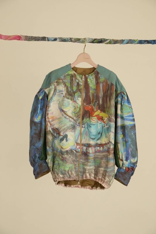 1枚の絵をまとうようなMidnight Princessのプリントが目を惹くブルゾン。