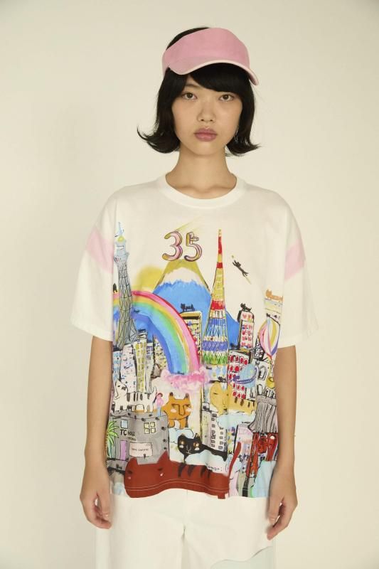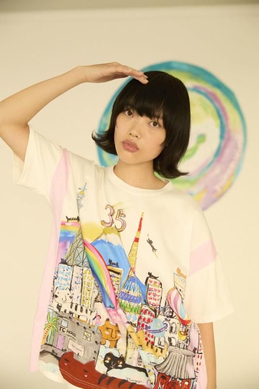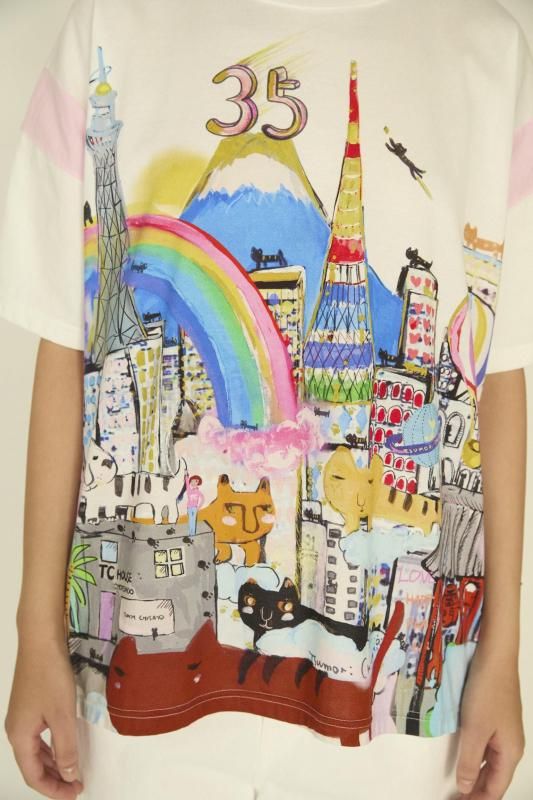 東京タワーやスカイツリー、雷門などの東京の街並みとTC HOUSE Omotesando、たくさんの猫たちを描いた特別な風景画。35周年を記念して描き上げたプリントです。
