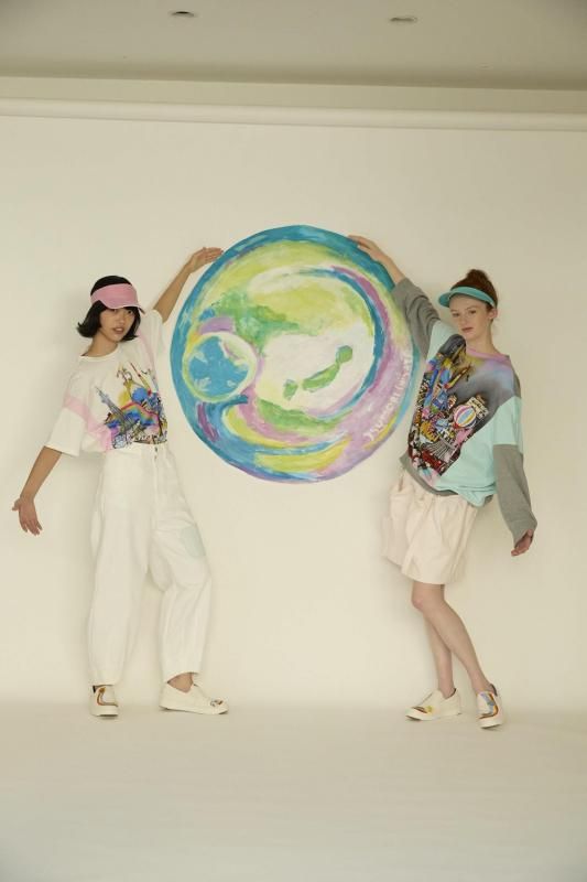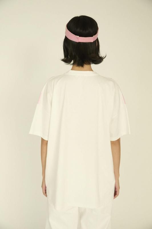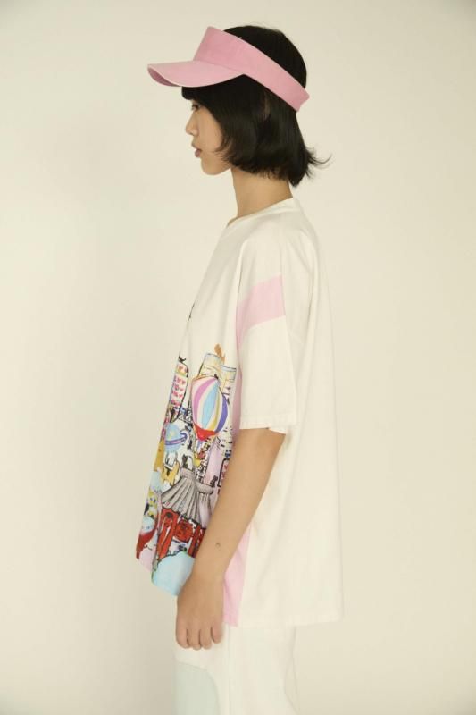 両サイドに無地のカラーを合わせ、袖の切り替えを落としてゆったりしたサイズのTシャツに仕上げました。
