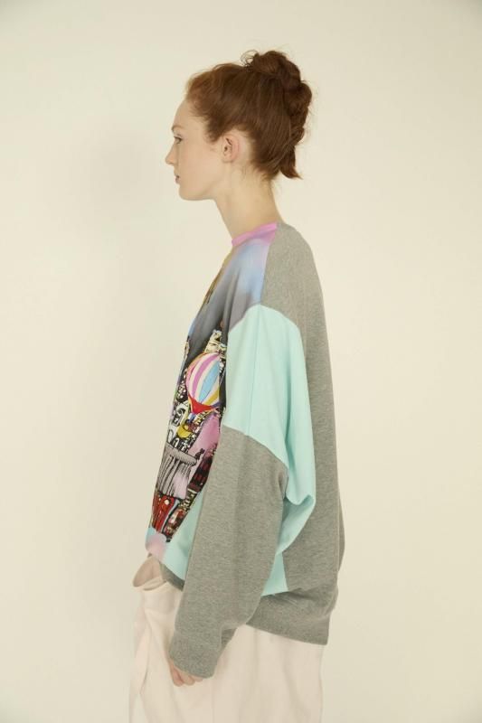 ミニ裏毛を使用したオーバーサイズトレーナー。丸みのあるシルエットがツモリチサトらしい1枚です。
