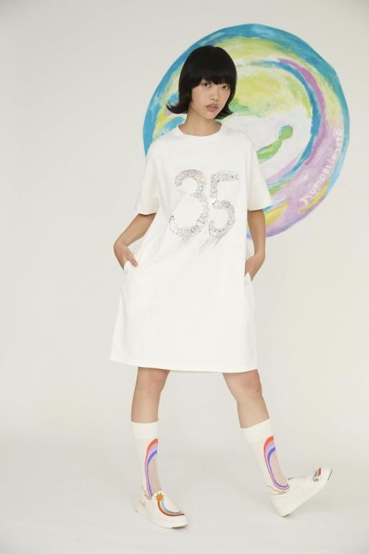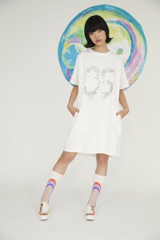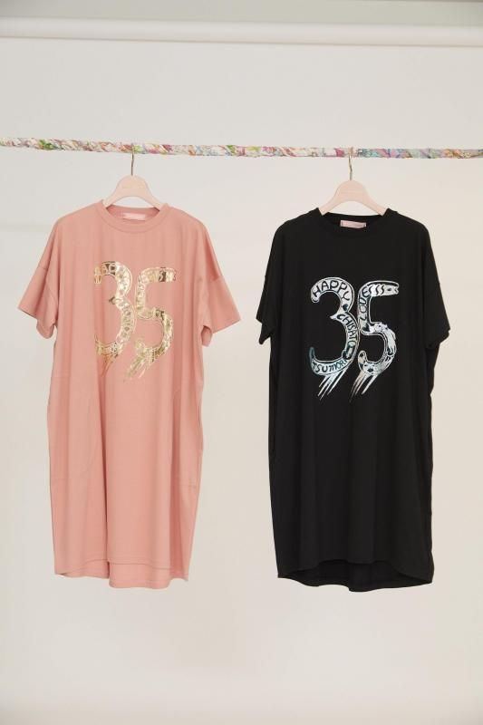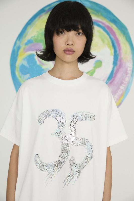 35の文字にはよく見るとヘビやネコが描かれており、箔プリントをすることで存在感のある1枚に。